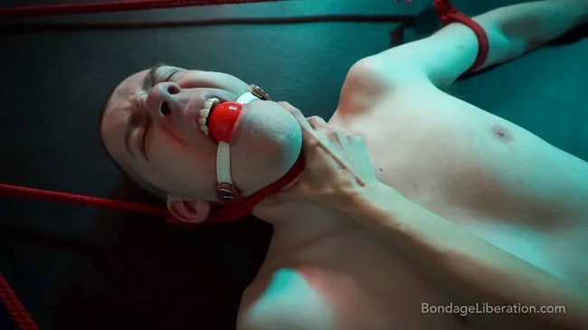 Elise then binds his balls to the ceiling and pulls them down, forcing Dart into a painful backbend with nowhere to lean.