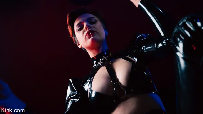 Eve gets folded in half in a “jackhammer” position and Lady goes to work, fucking Eve’s tight asshole with her huge strap-on cock.