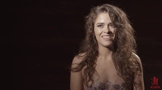 She is made to kneel and serve Bambino and his enormous cock after being shackled with her wrists above her head.
