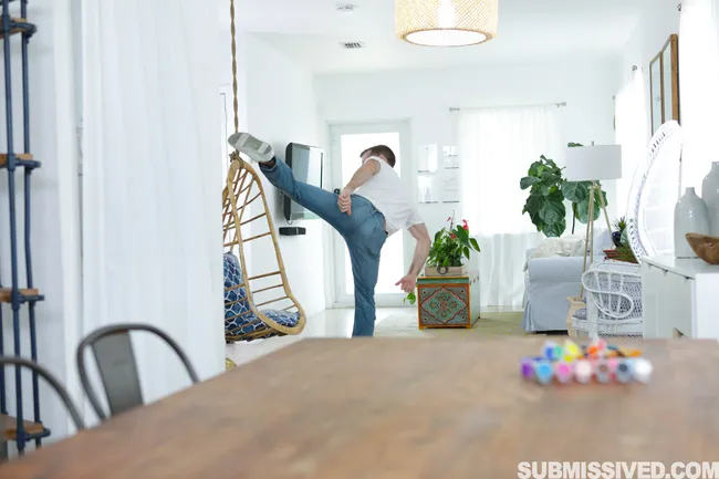 At his request, she disassembles the easel, and it immediately begins to sway.